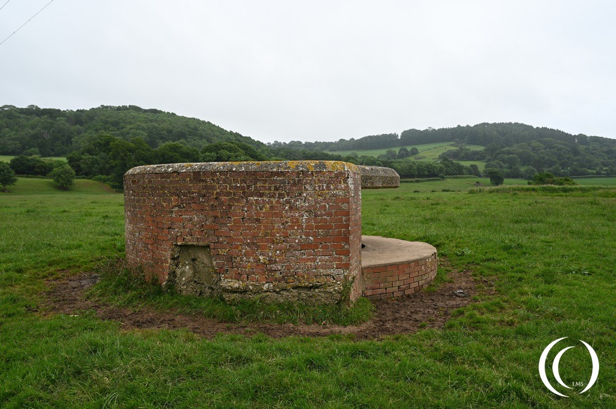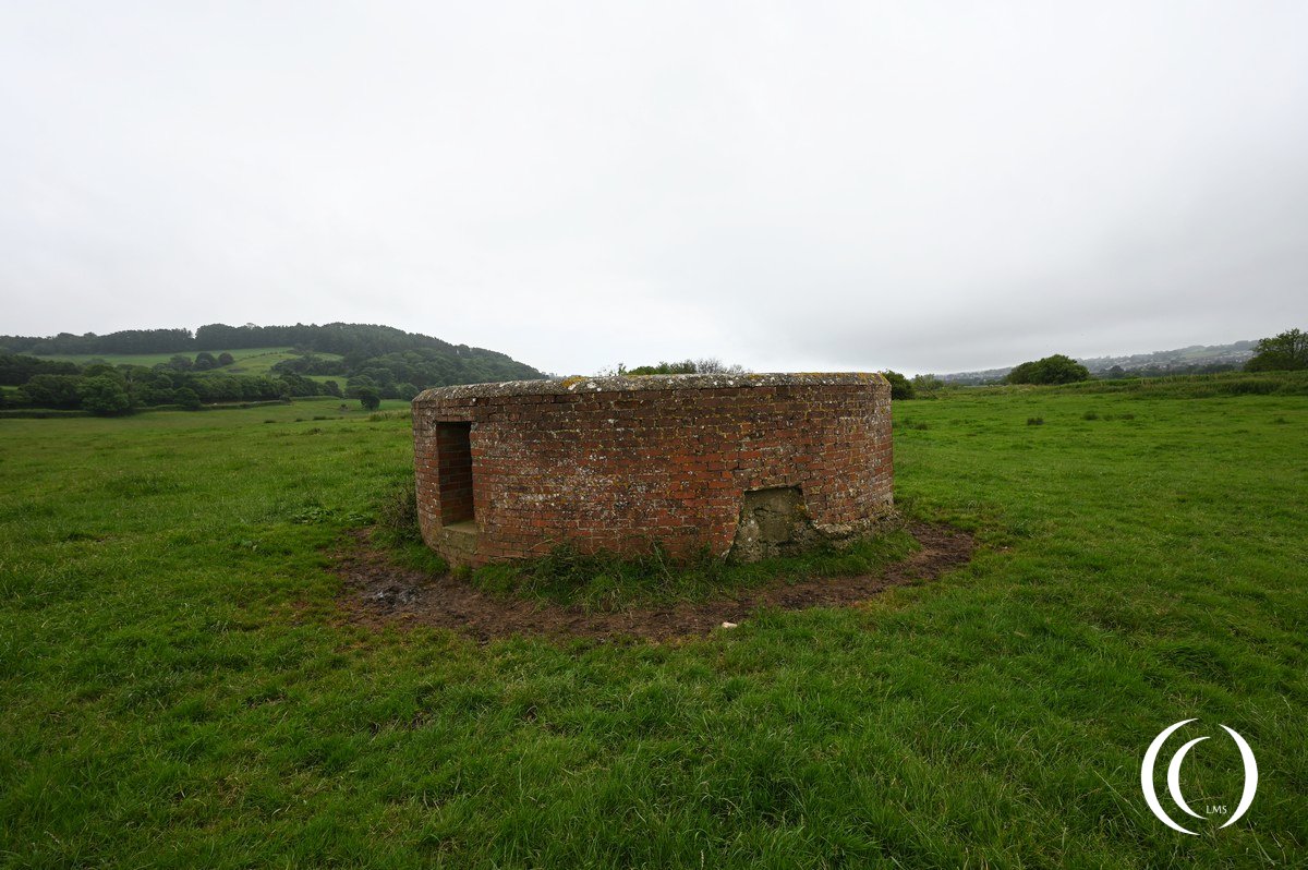 This circular type anti-tank emplacement for a 6-pounder gun has brick external shuttering. It is situated on the east of the river Axe, with a field of fire westwards across the river and to the A3052 road bridge over the Ax river.