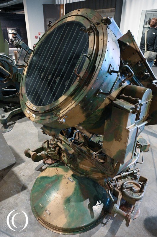 The SW 36 anti-aircraft searchlight was developed in the late 1930s. It was a lightweight and portable device, easy to deploy. Its primary function was to search for and detect enemy aircraft at low and medium altitudes. The projector is powered by a generator.
