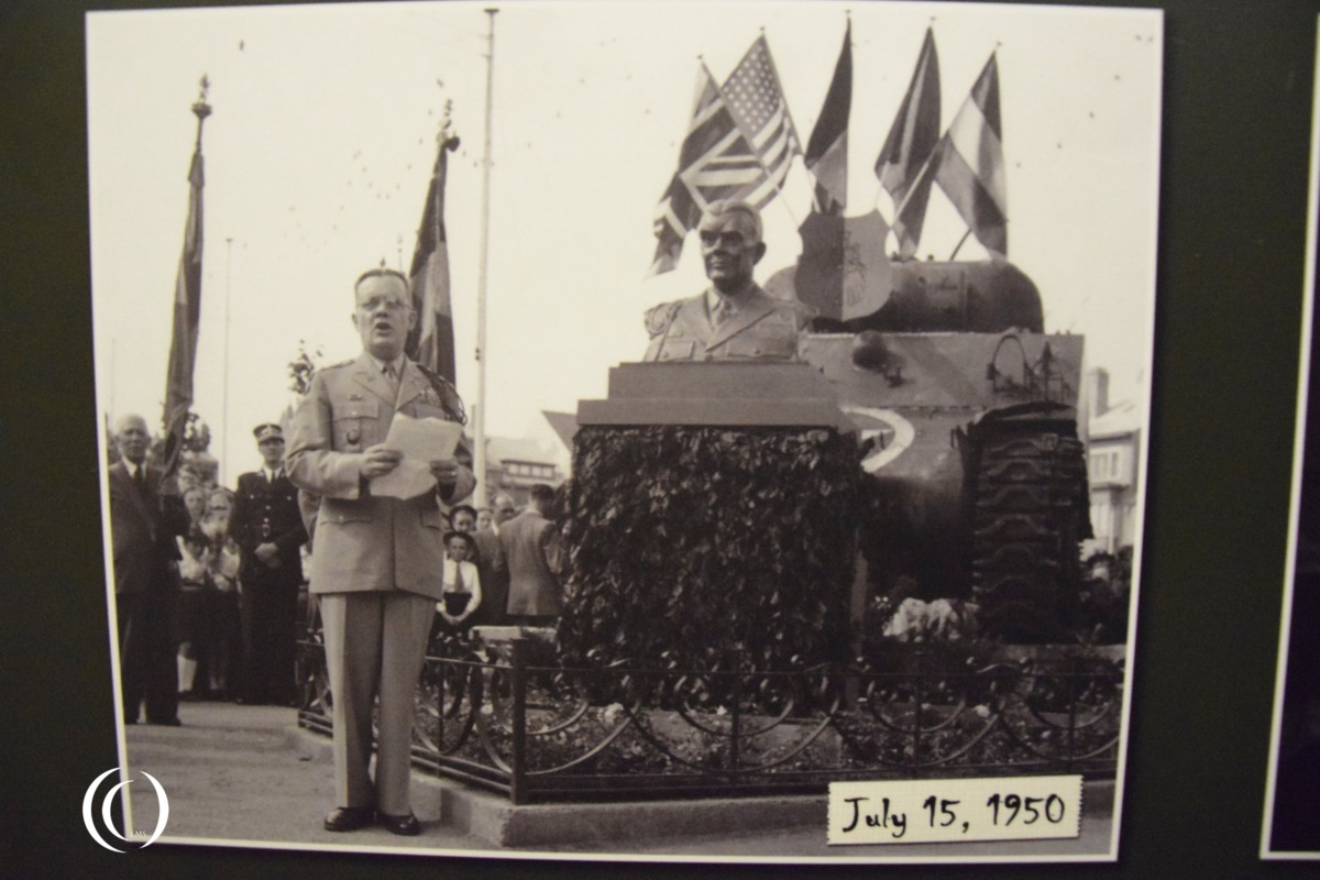 Next to the bust of General McAuliffe is a Sherman M4 Tank. The tank was put out of action in December 1944 and is transformed into a memorial. They named the tank ‘Barracuda’.