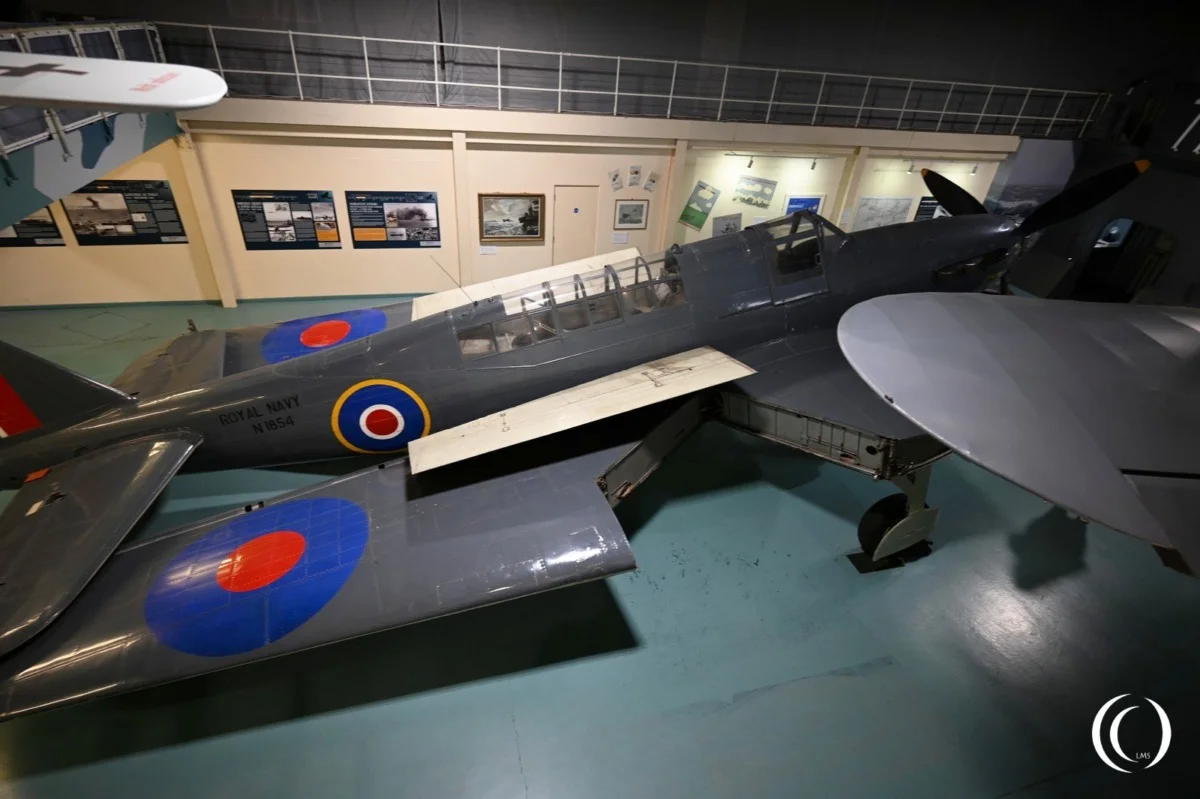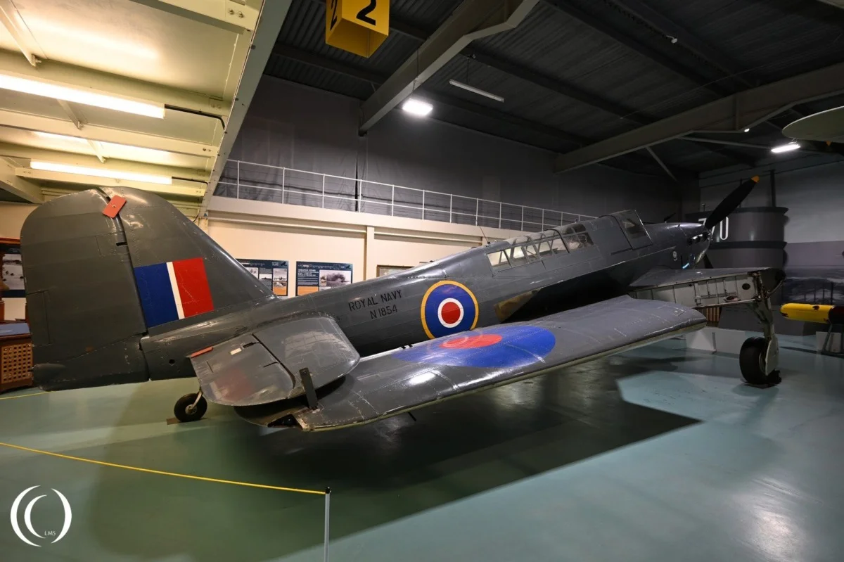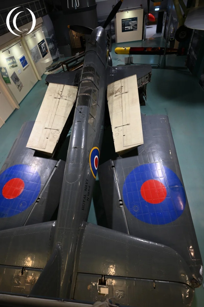 The photos show the only surviving Fairey Fulmar in the world, and a very special one. It is the first production example of the Fairey Fulmar, sole survivor and holds immense historical value. It has Registration N1854 (c/n F.3707) and was first flown in January 1940 form Ringway in Manchester. Originally designated N1854 before it was re-registered as G-AIBE. After initial deployment, the aircraft served in a utility capacity for Fairey Aviation, used as a “hack” and for trials, including deck-landing evaluation aboard HMS Illustrious. Though often outperformed by enemy fighters, it did fairly well against Italian aircraft and its pilots were credited with 112 kills in all, making the Fulmar, surprisingly, the top-scoring Fleet Air Arm fighter of WWII.