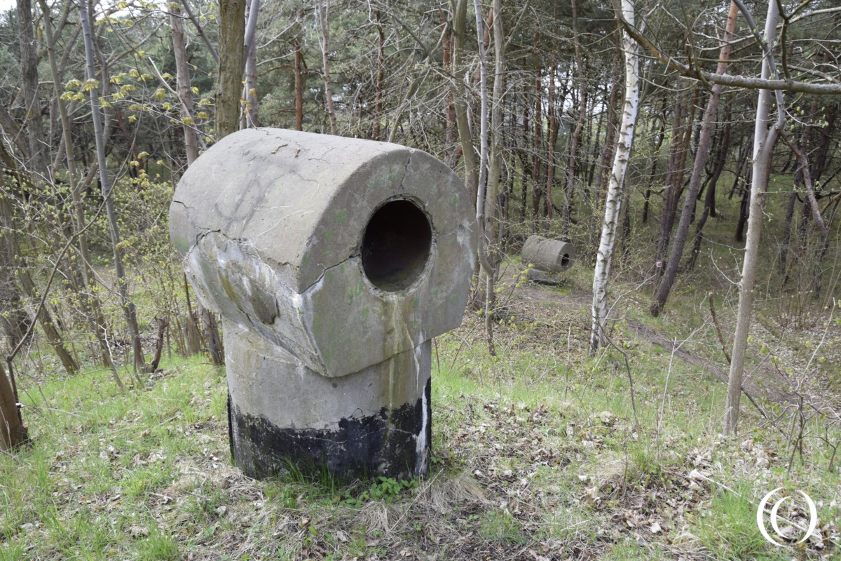 An adjacent bunker, camouflaged with earth, has been built along with the fire control system for the troops. Ventilation ducts and entrances are visible, but unfortunately, the bunker is blocked off.