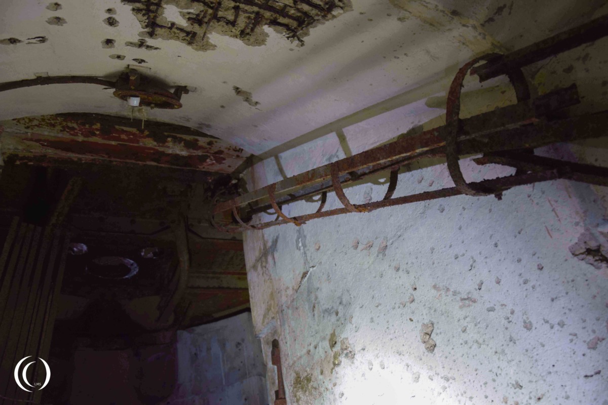 The central infantry barrack can be considered the group’s stronghold. It is surrounded by infantry ramparts, the layout of which curves around the barrack. The large infantry barrack has three floors, with the command post and telephone exchange on the underground level. A flank casemate for two 7.7cm guns is located throughout the barrack. Their fire is directed by an armored artillery observer. The flank casemate serves to cover the area between Luitpold and the Chesny-South infantry fortress. South of the infantry barrack is an underground building housing the bakery and the power station, equipped with seven diesel engines. Fort Luitpold was supplied with water from the Cuvry pumping station. The water reserves in the various buildings total 2,640 cubic meters. The buildings were heated by a coal-fired central heating system.