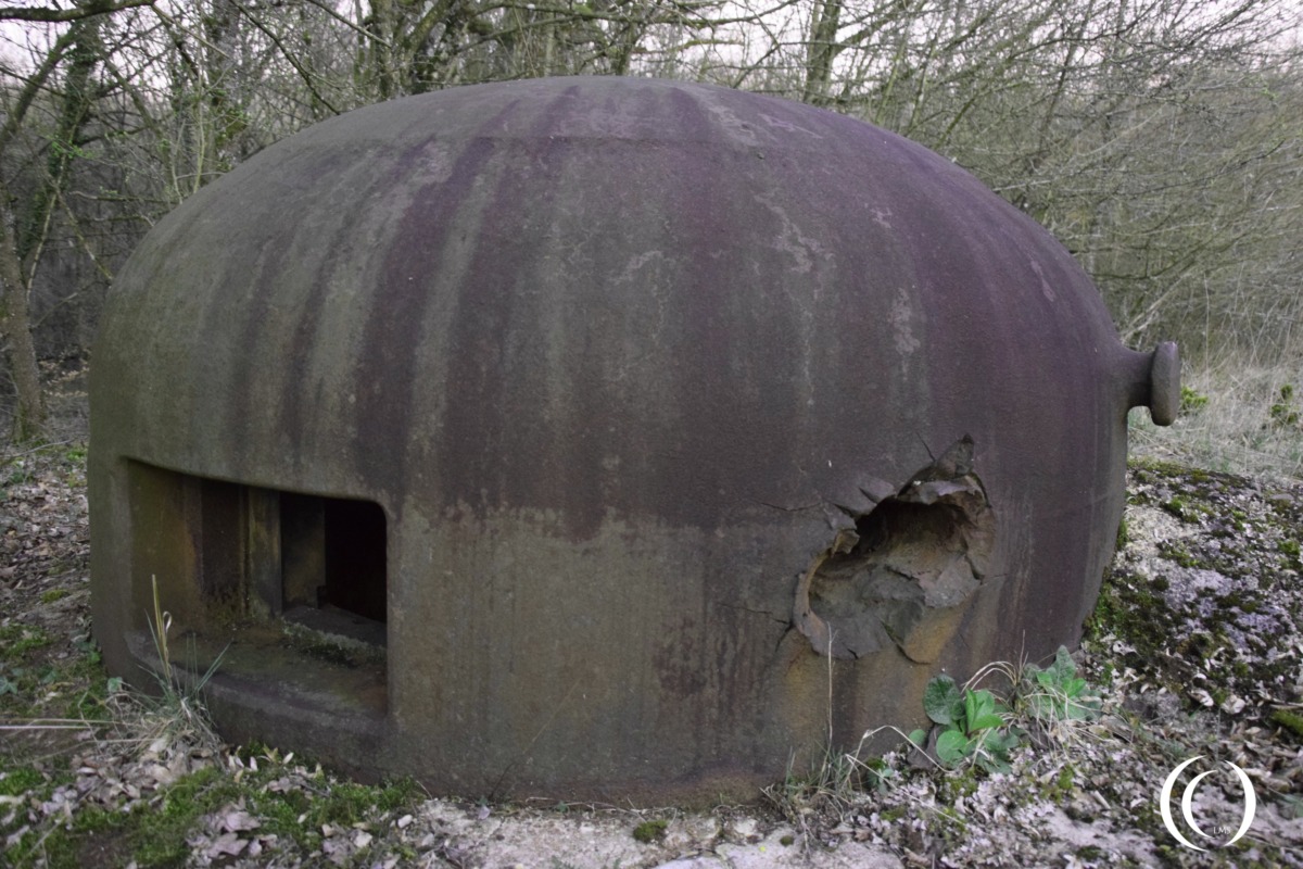 - Block 1: infantry casemate in flanking position pointing north. There is an embrasure for a machine gun, two automatic rifle cloches (GFM) and one JM/AC47 anti-tank gun. This gun with a caliber of 47 mm has a penetrating capability of 77 mm armor at 500 meters – 56 mm at 1000 meters. (AC stands for Antichar – char is French for tank).