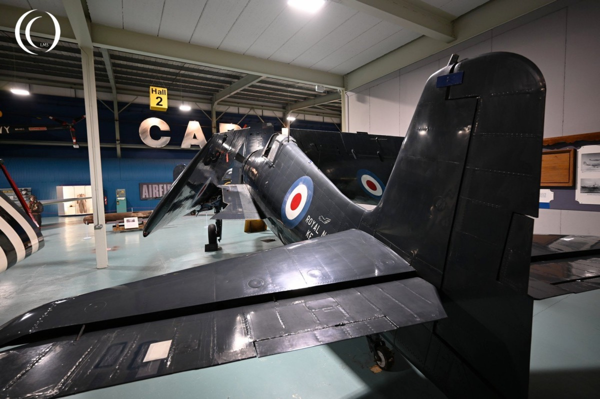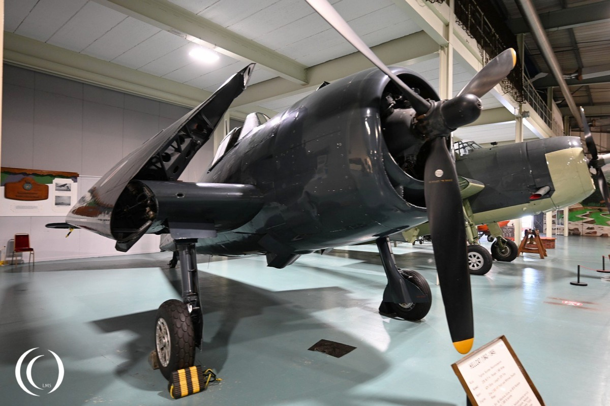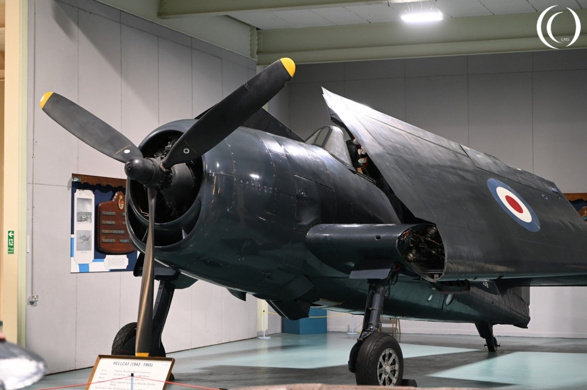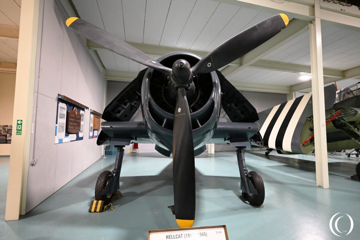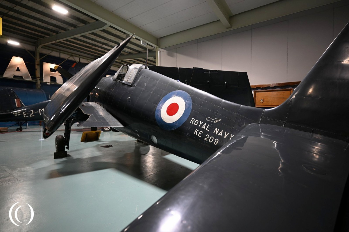 In the photos is a Grumann Hellcat F Mk. II – F6F-5 type with Royal Navy serial number KE209. It has construction number A-10924 and was built in 1945 as a U.S. Navy F6F‑5 (BuNo 79779).