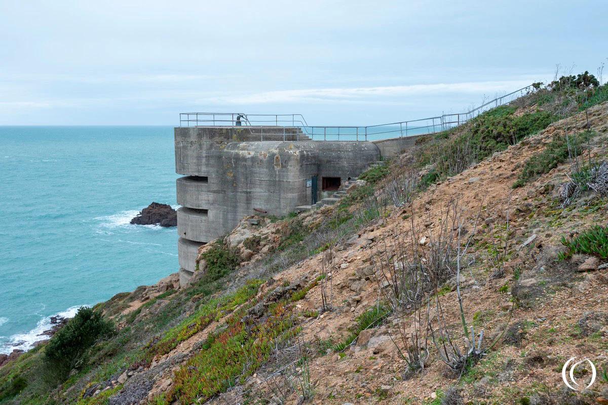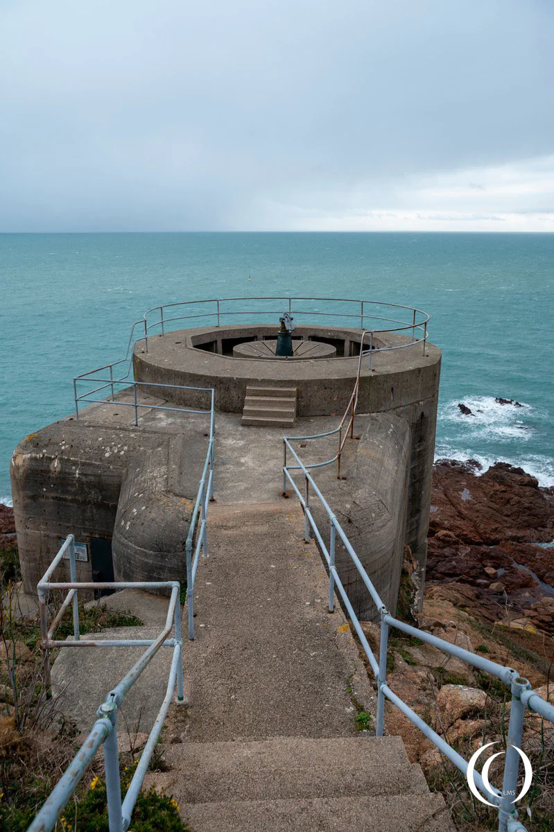The Kriegsmarine Peilstand und Messtellung 1 or MP 1 tower is free to visit on the outside. Just park the car at the car park above at the Kriegsmarine Peilstand und Messtellung at Battery Lothringen. If you like to see the inside you can try to contact the Jersey War Tours and find out if they have a guided tour inside this MP 1 or one of the other towers, like the Naval observation tower MP 2 at Corbiere to the west, or the Naval observation tower MP 3 near Les Landes to the north.