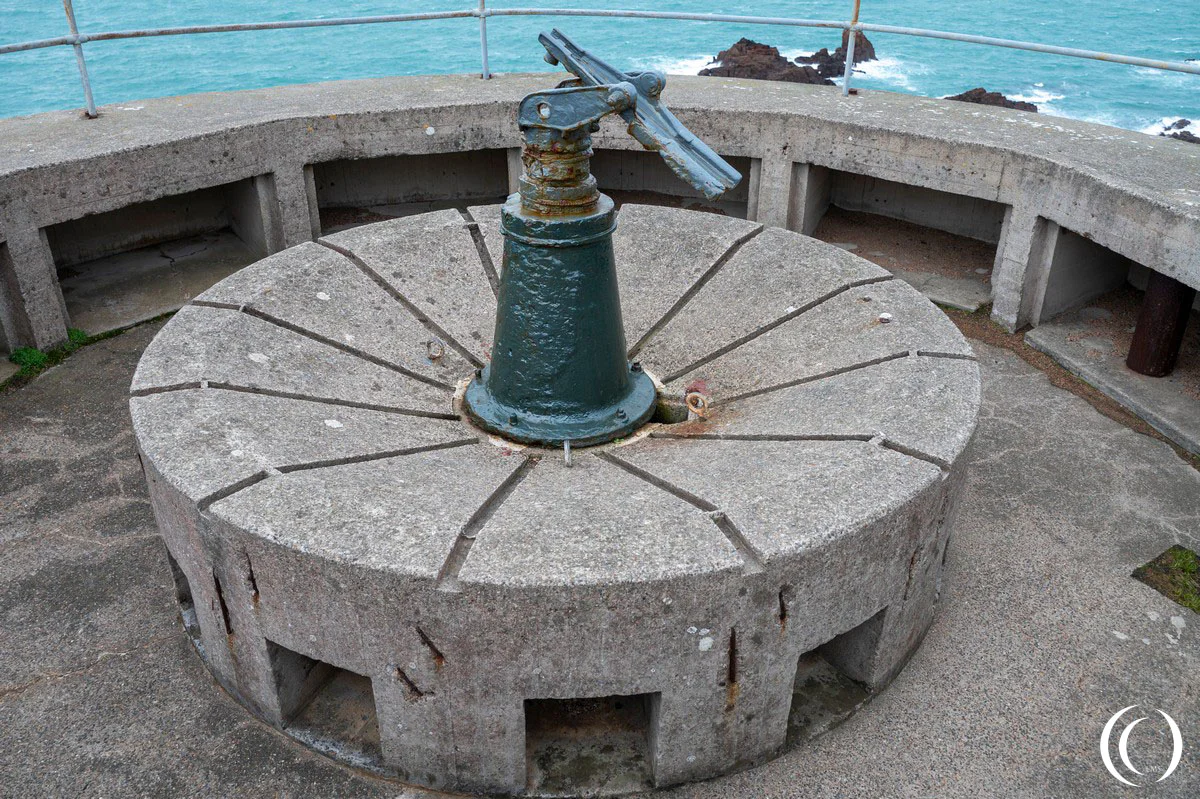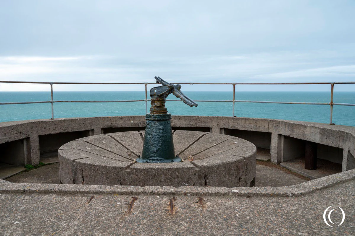 This Naval observation tower was connected to the Coastal Batterie Lothringen. It is one of the three unique observation towers that were constructed on the Island of Jersey. This Coastal Battery from the Kriegsmarine was situated on the Noiront Point of the Channel Island. The concrete tower is 16 meters high and has six levels. The bottom five consist of a windowless lower floor and four floors with viewing slits. Each of these rooms could guide the fire of a single 15 cm gun in the Lothringen Battery. On top was an open rooftop with a 2 cm Anti-Aircraft gun. A personnel bunker was directly next to it.