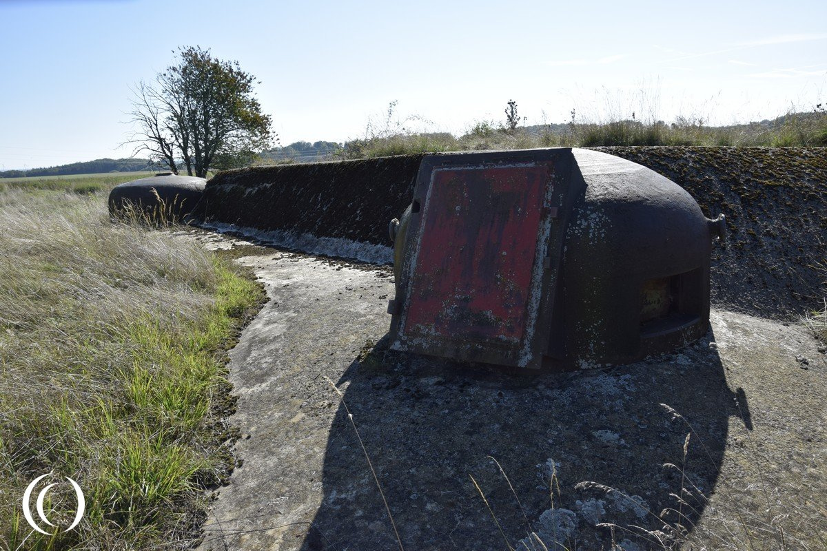 The site remains the property of the French army and is therefore off limits. There is a dirt road next to the highway where you can spot the metal coupola’s. Casemate C2, opposite the field with the gun positions, is located along the RN 52 road. It has been restored and may at times be open to the public.
