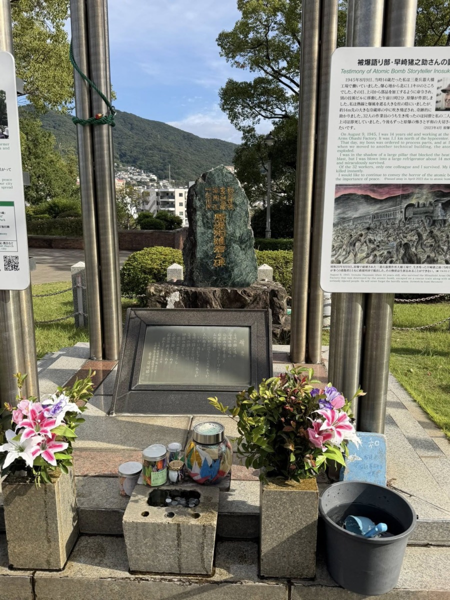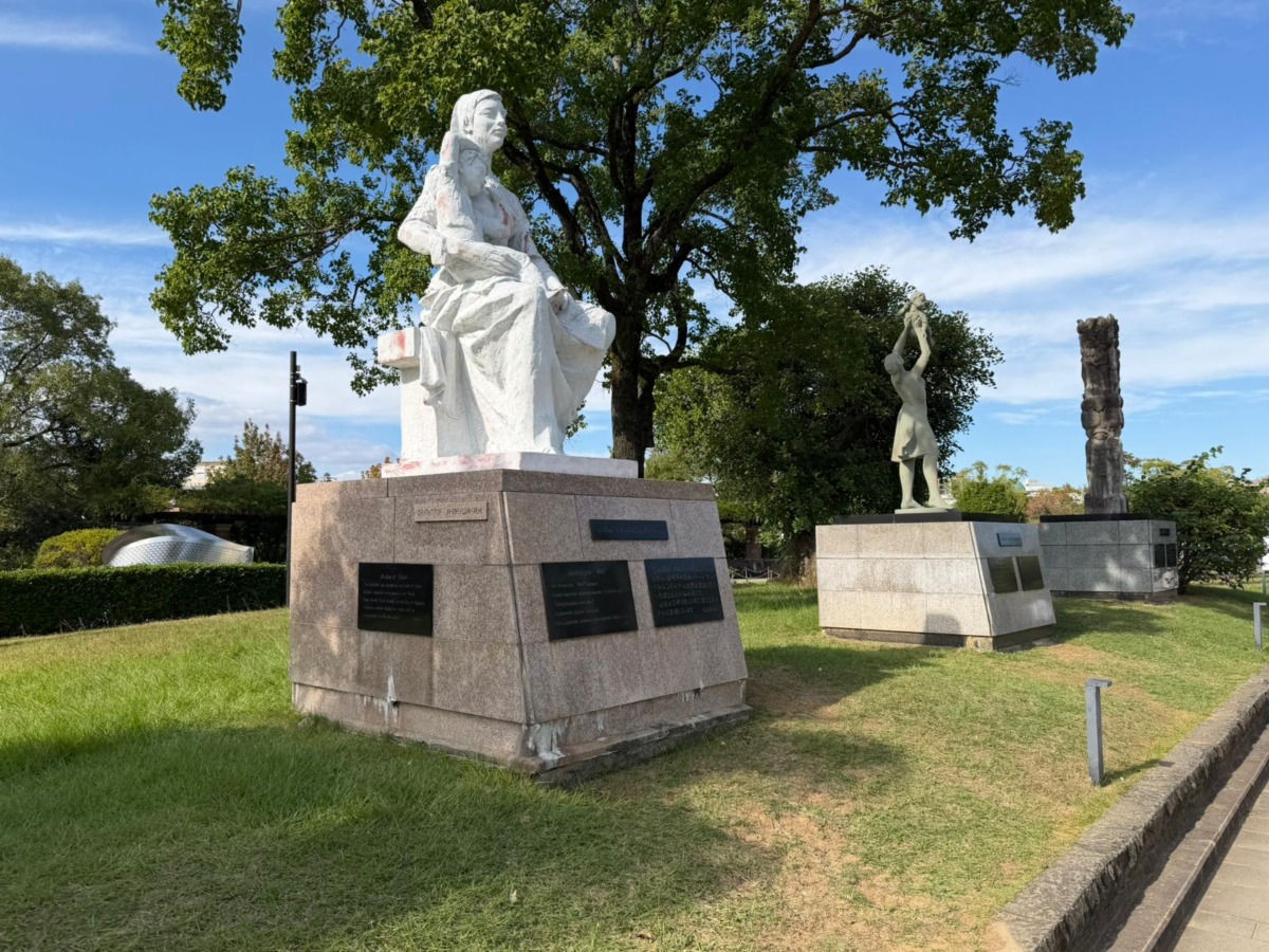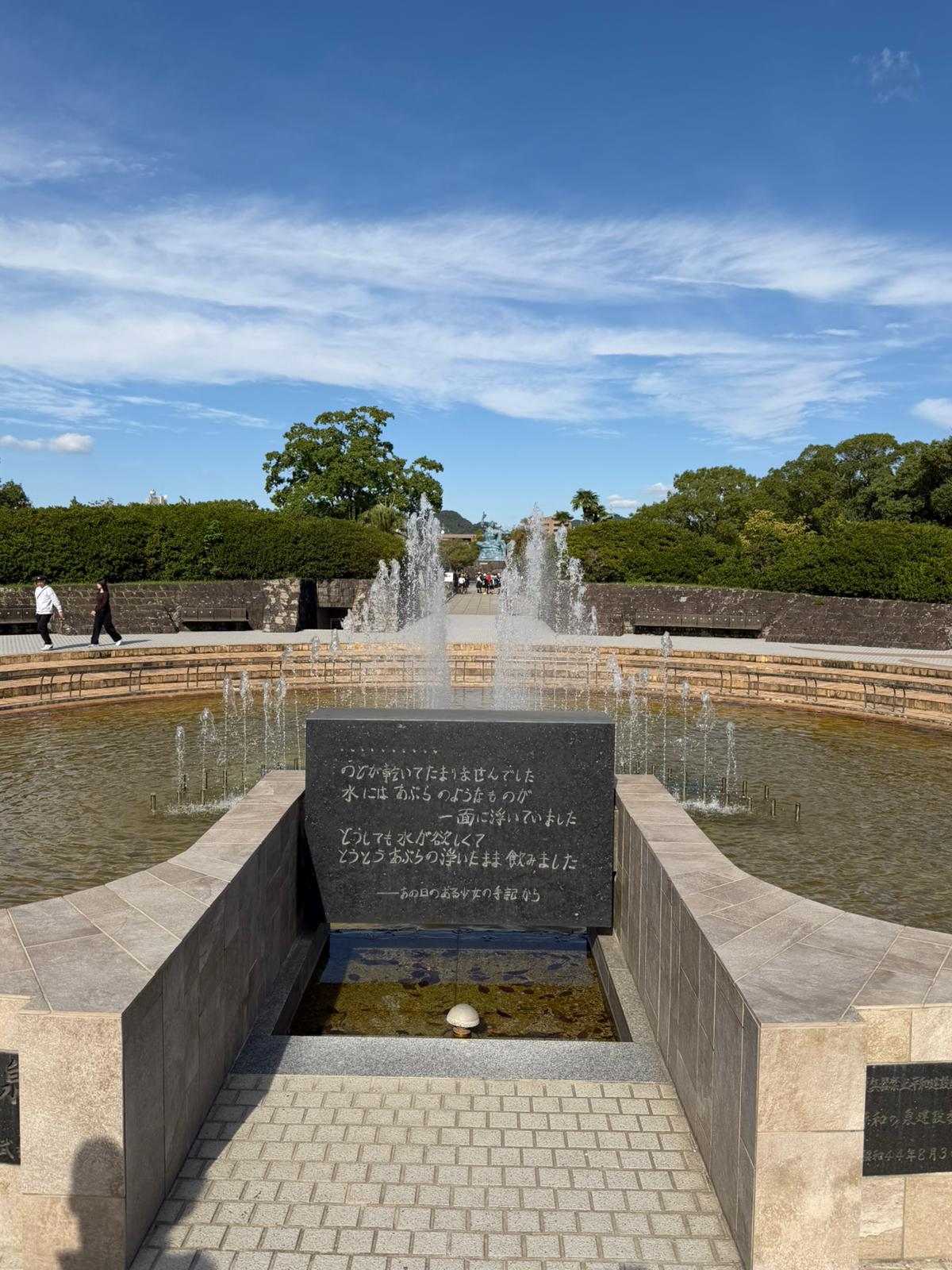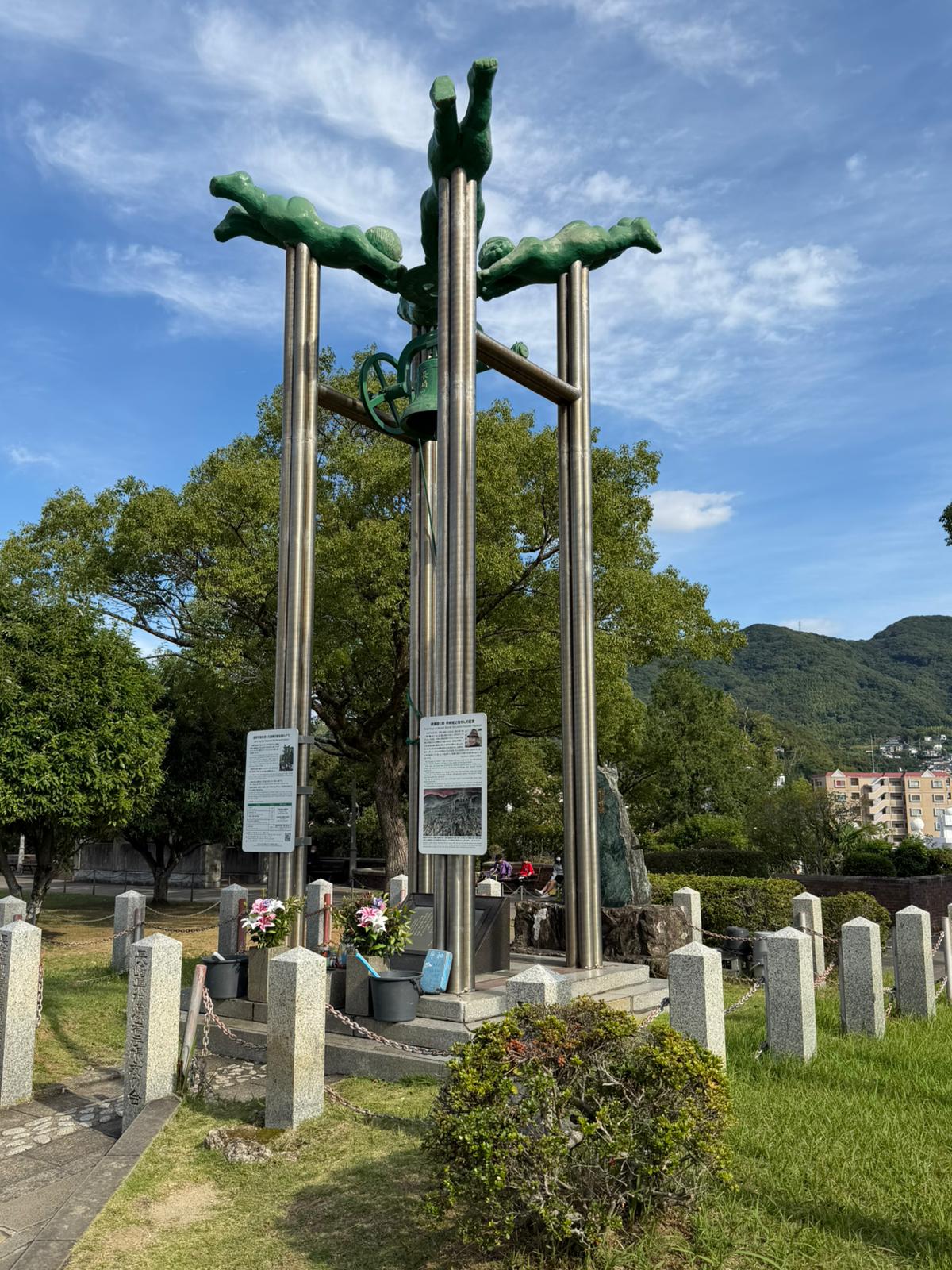 Nagasaki Peace Park (長崎平和公園) is a memorial site in Nagasaki, Japan, dedicated to the victims of the atomic bombing on August 9, 1945. Built in 1955, the park symbolizes remembrance, resilience, and hope for lasting peace. Its centerpiece, the Peace Statue by Seibō Kitamura, features a raised right hand pointing to the threat of nuclear weapons and a left hand extended in peace. The park also includes the Fountain of Peace, memorials donated from around the world, and the nearby Atomic Bomb Hypocenter Monument marking the explosion site. Every year on August 9, the Nagasaki Peace Memorial Ceremony is held here, drawing visitors worldwide to honor the victims and renew the pledge for nuclear disarmament and global harmony.