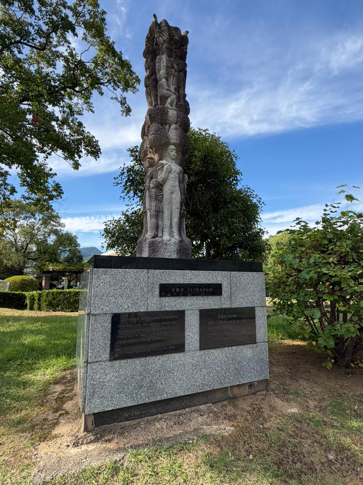 The plaque by the Peace Statue titled “Words from the Sculptor” reads: