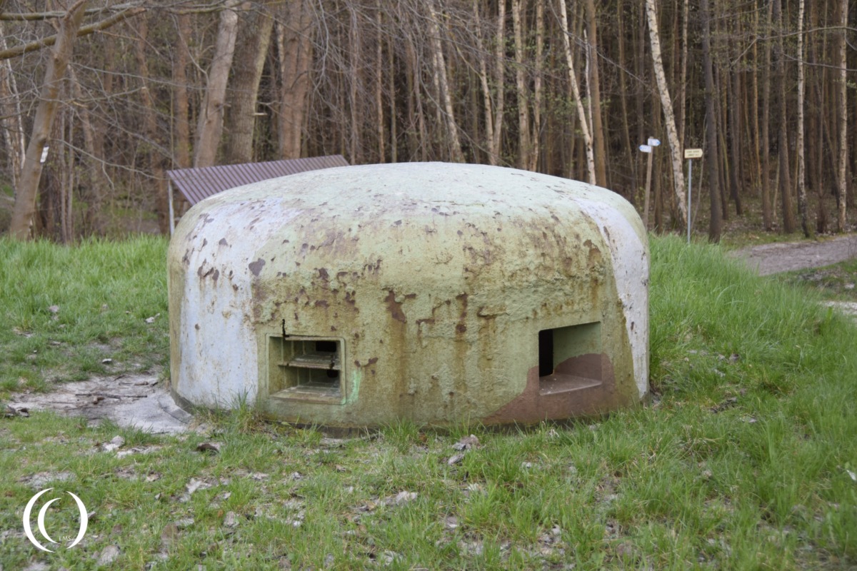 The bunkers were protected by walls 100-180 cm thick and a roof 140 cm thick. Each bunker was equipped with several machine guns firing from openings in the walls and from the covered dome on top. In addition to the machine guns, each bunker had a 37 mm anti-tank gun.