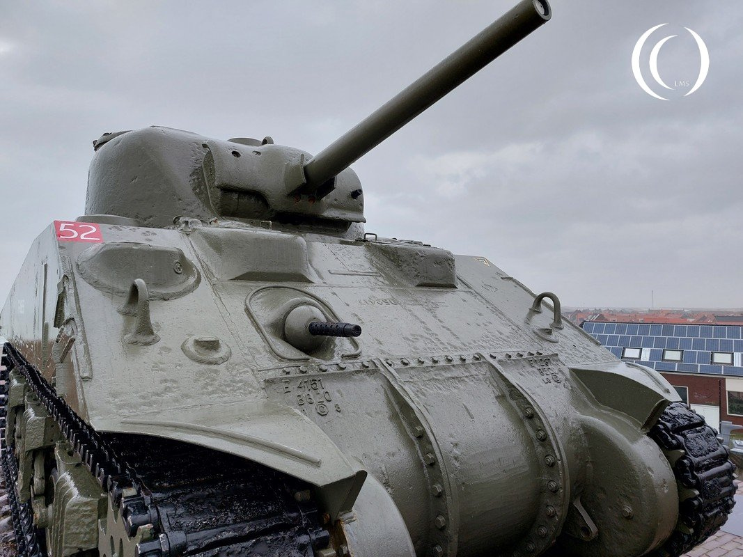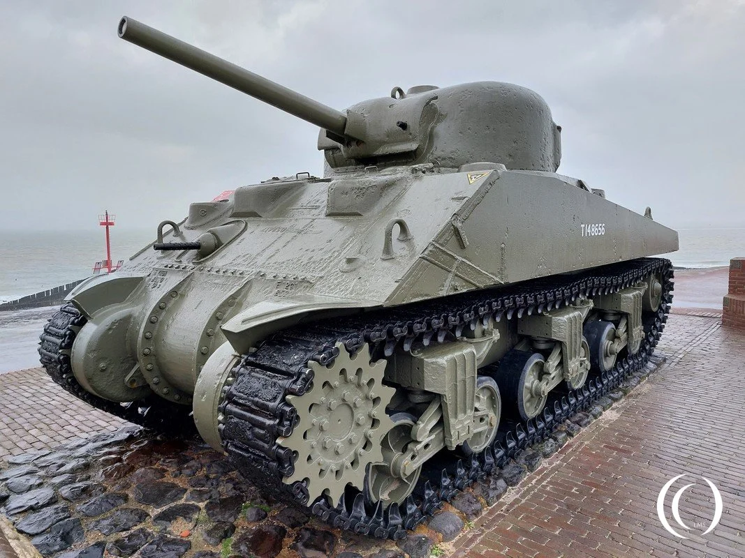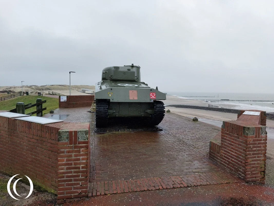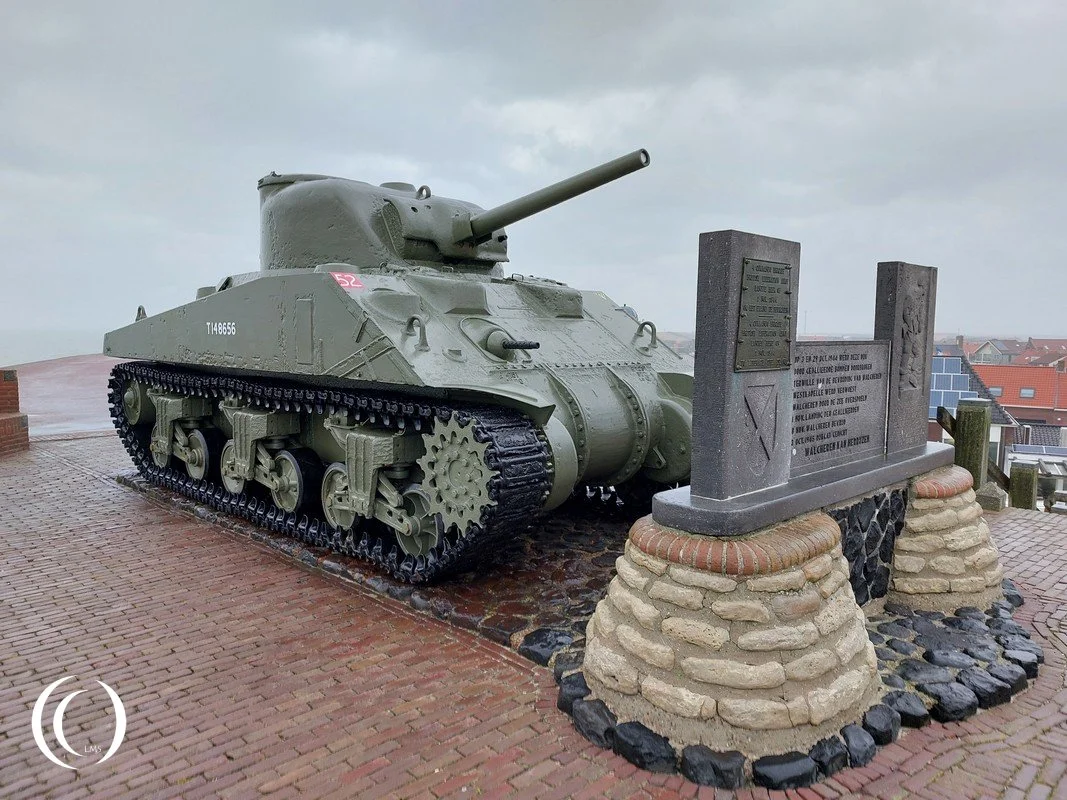 The Sherman tank has stood on the dike as a war memorial since 1961. The tank came ashore in November 1944 during the Battle of the Scheldt during Operation Infatuate II. The Sherman tank was a Crab version, meaning it was fitted with minesweeping equipment. This was removed in the late 1950s.