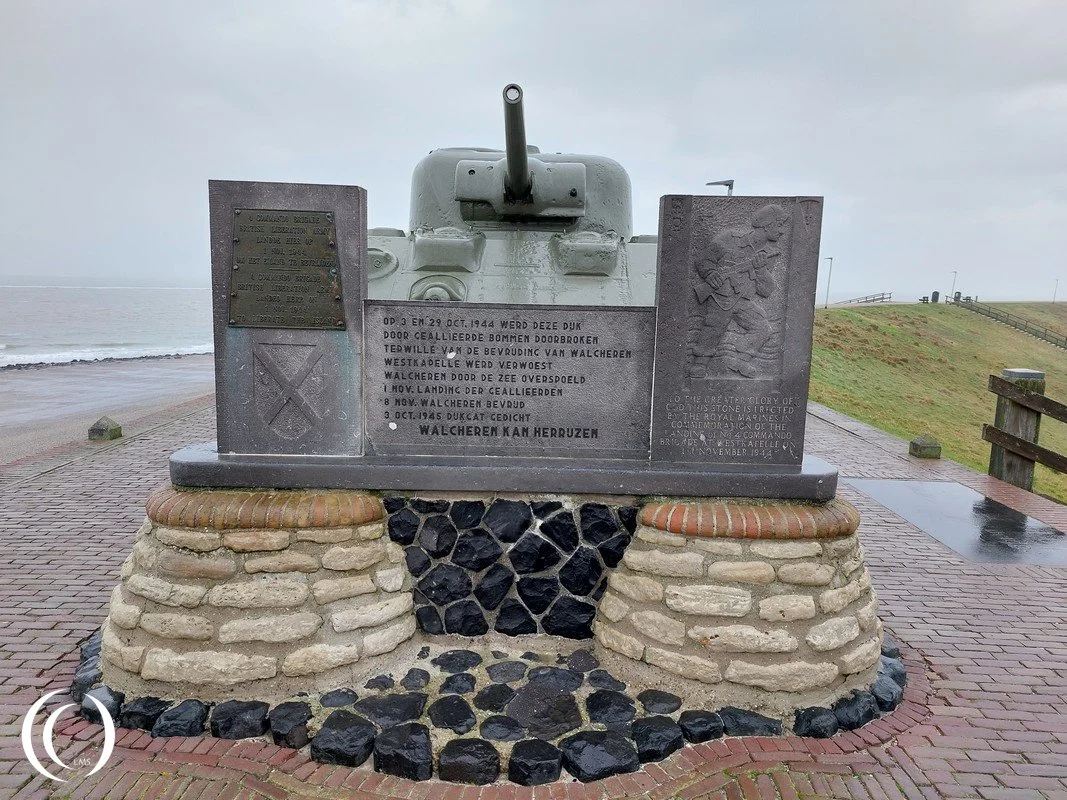The tank is an important symbol of the liberation of Westkapelle (Walcheren) and the Battle of the Scheldt. Its is positioned above the Dike and War Museum in Westkapelle. On the pedestal and towards the museum you find memorials of the battle and Second World War.