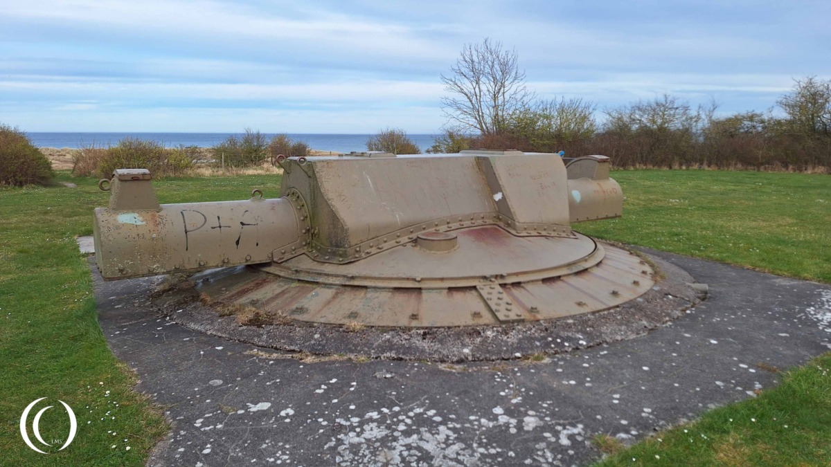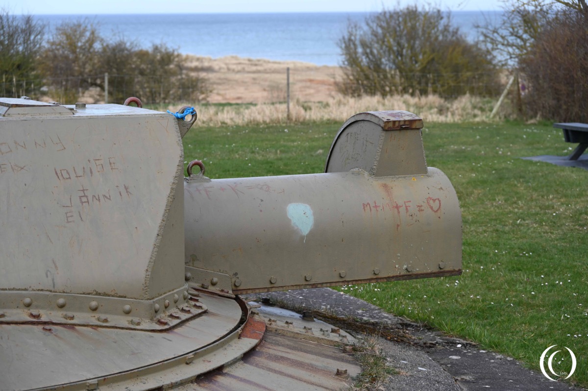The Frederikshavn North Flak Battery is open to visitors, and there are free parking spaces at Palmenstrand. Walking paths have been laid out to the four gun positions and the rangefinder turret. One 10.5 cm gun stands in its position, looking up at the lonely sky. The bunkers are officially closed, but in 2025, one of the FL 243 bunkers was accessible.