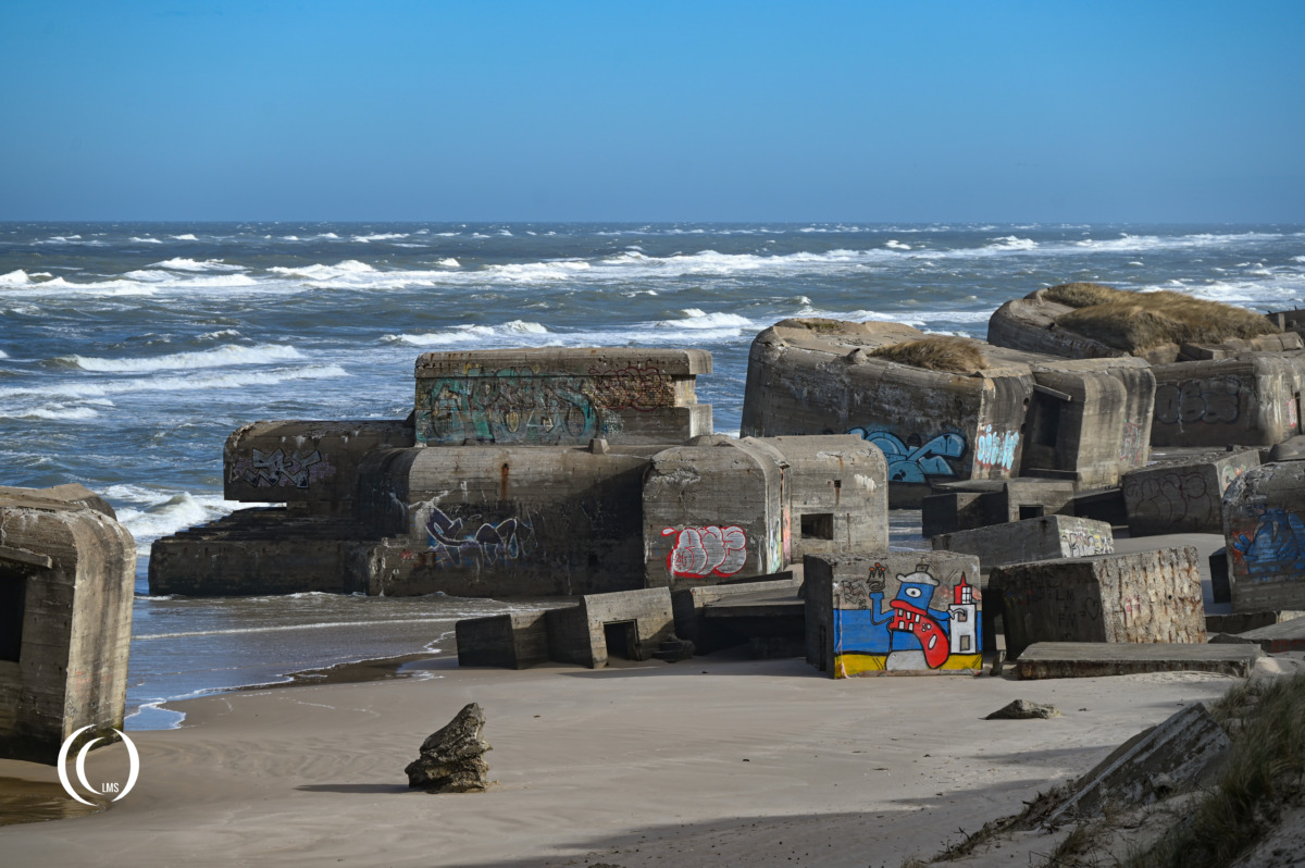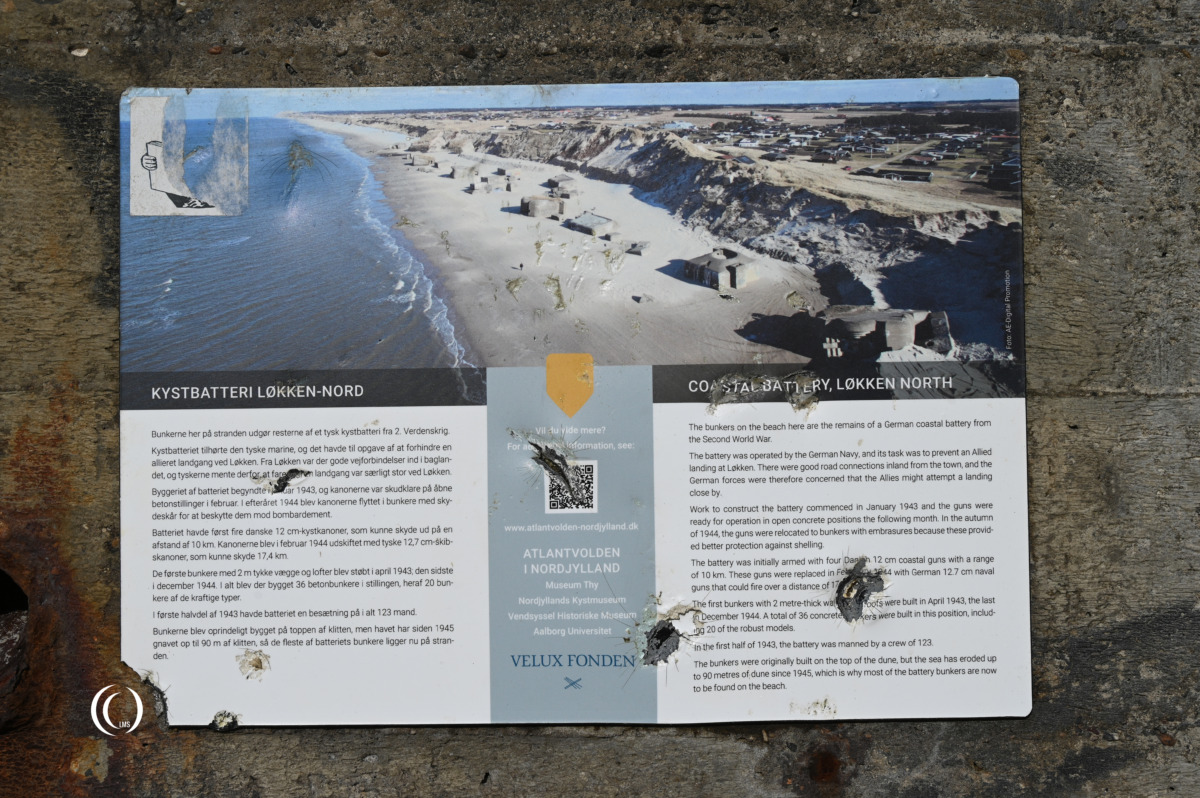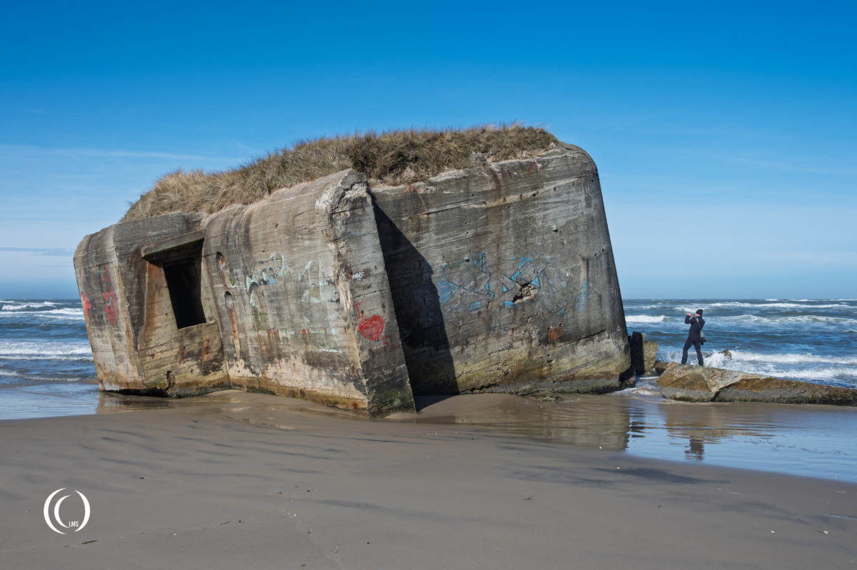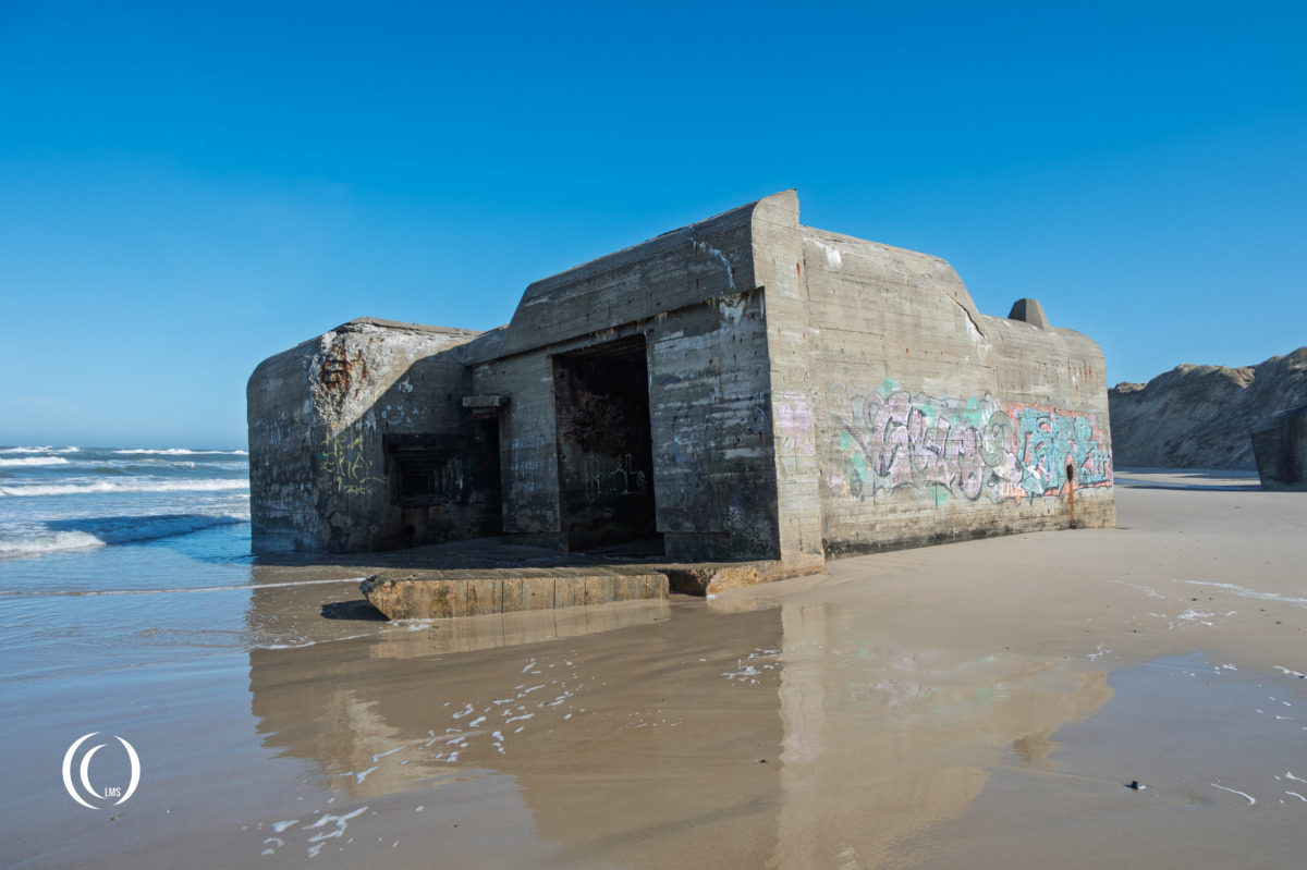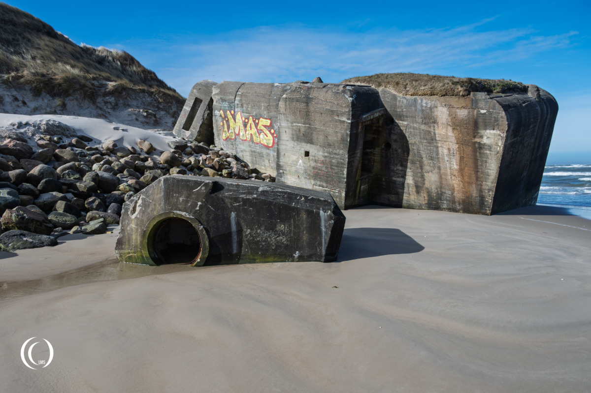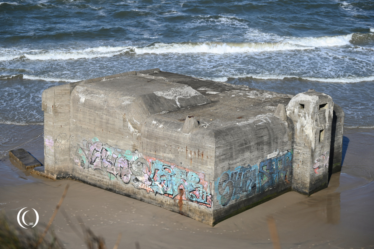 Although the coastal battery was built in the dunes behind the beach during World War Two, erosion of the coastline over the years has caused the dunes to recede for 90 meters, leaving the bunkers on the beach and slowly slip into the sea.