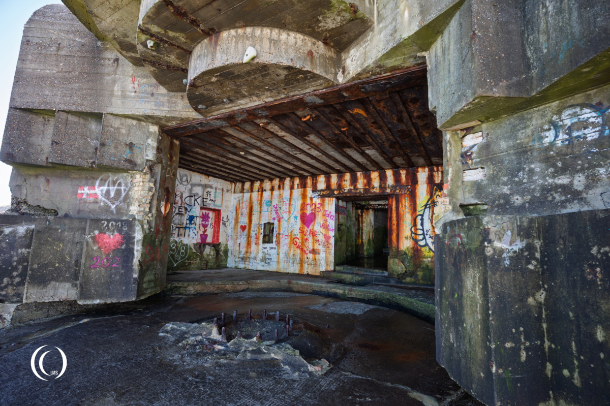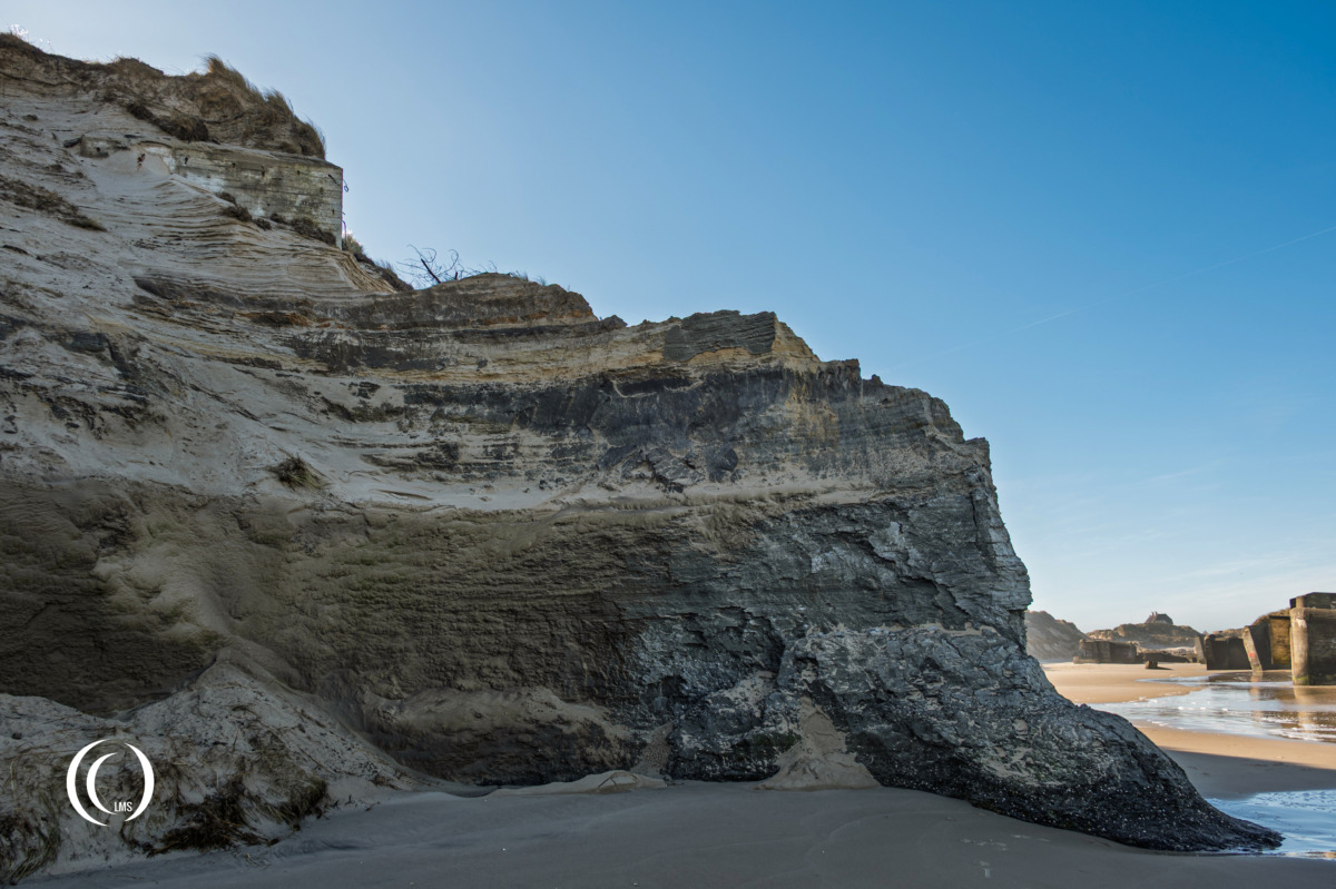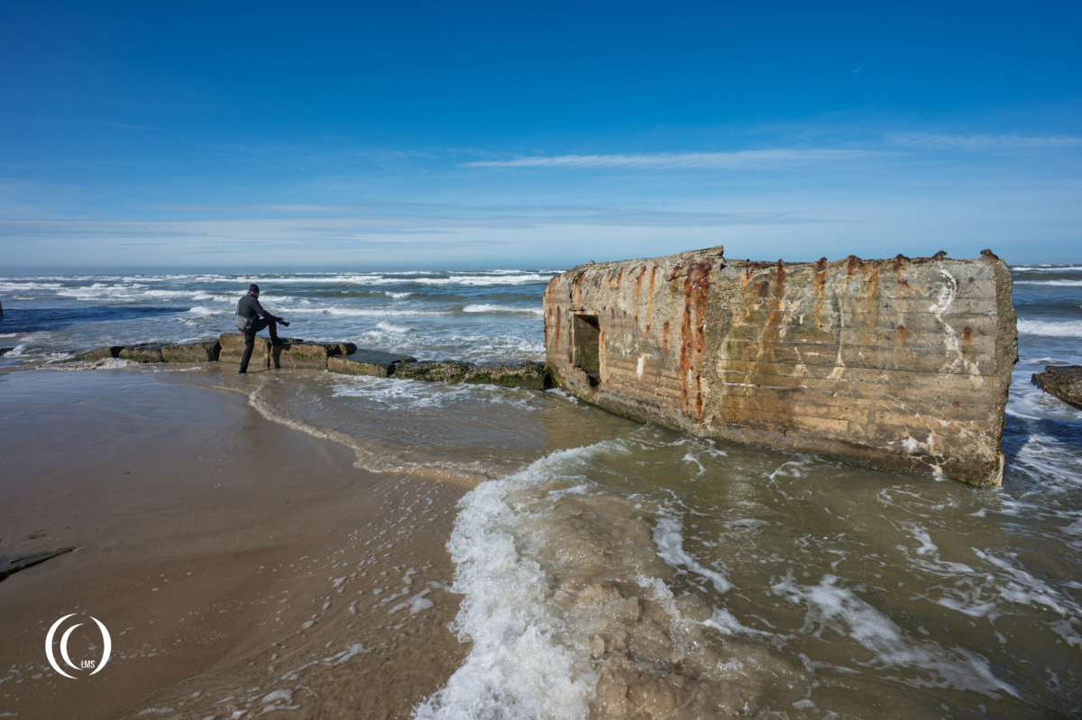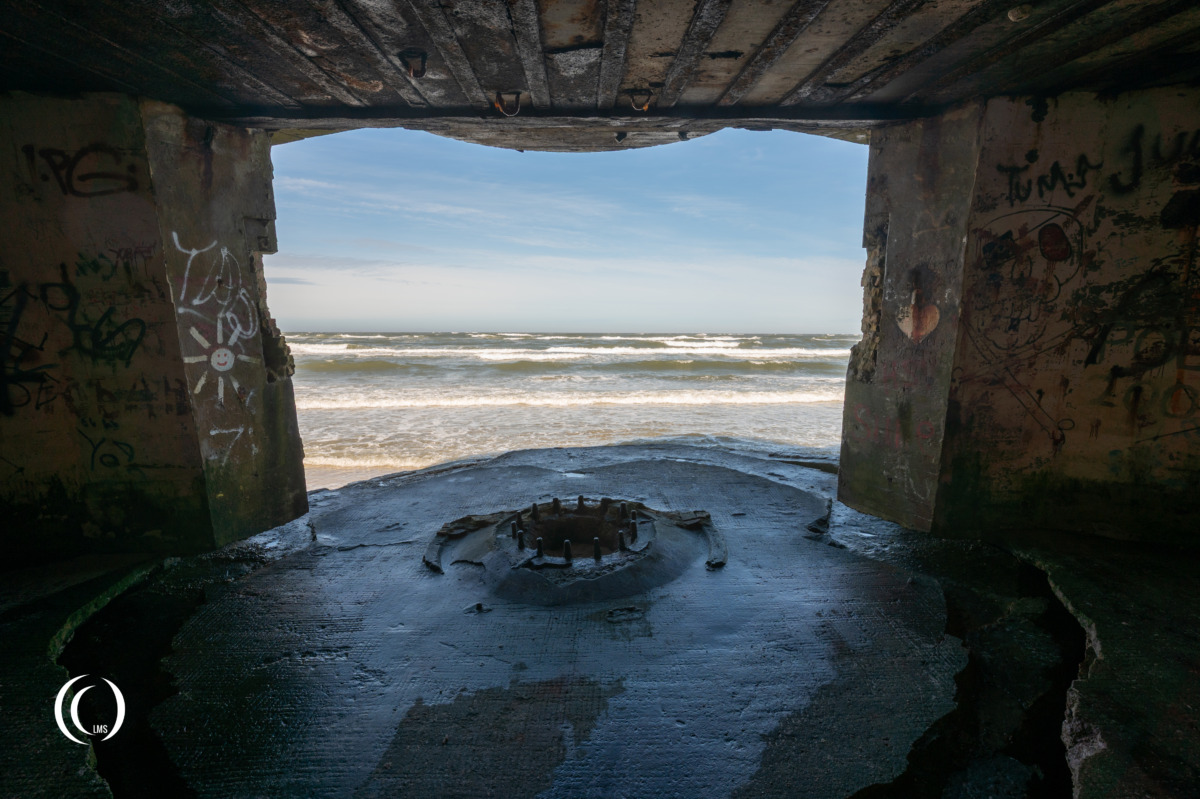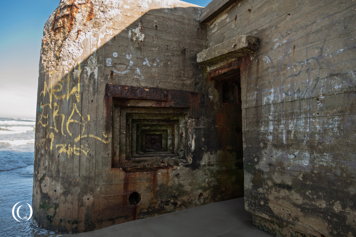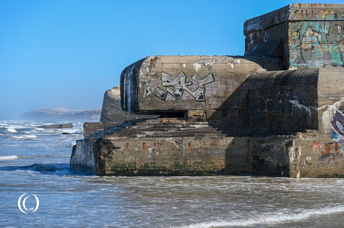 Although the coastal battery was built in the dunes behind the beach during World War Two, erosion of the coastline over the years has caused the dunes to recede for 90 meters, leaving the bunkers on the beach and slowly slip into the sea.