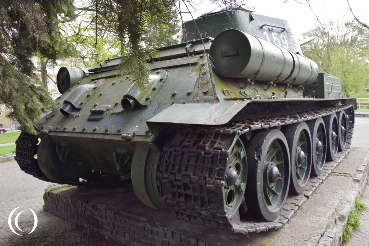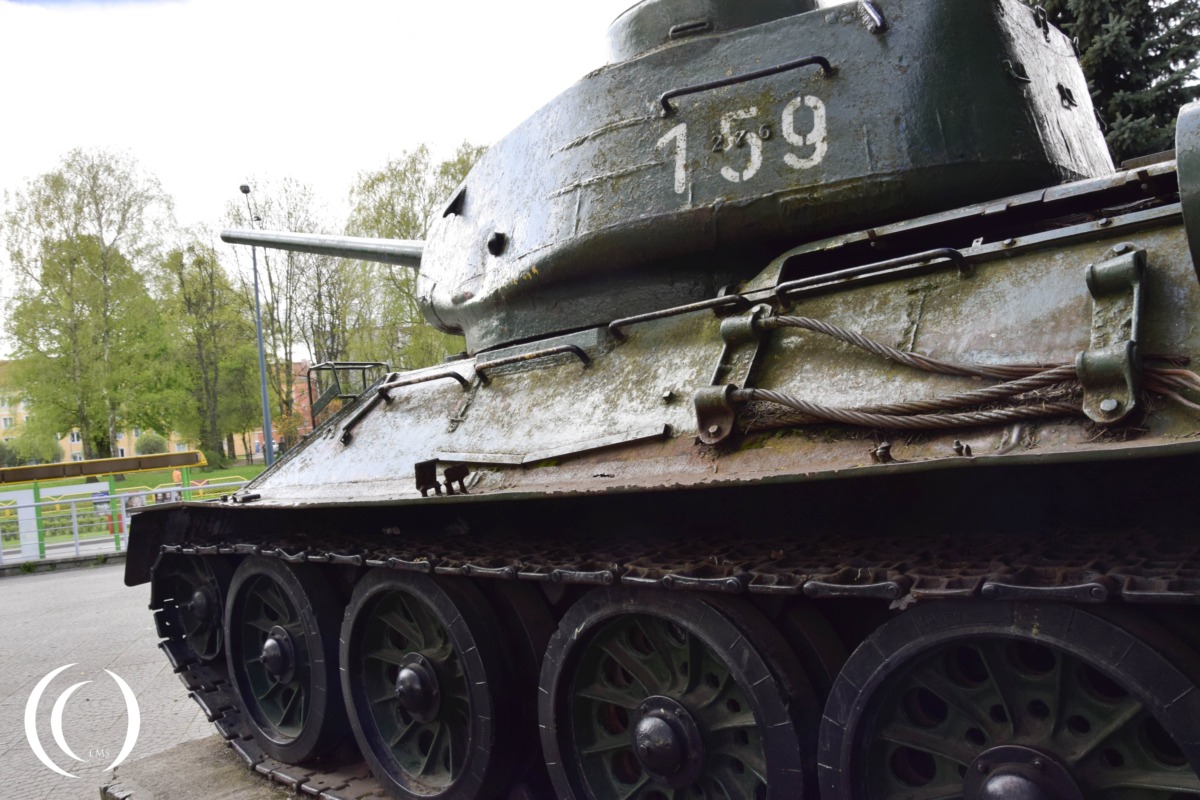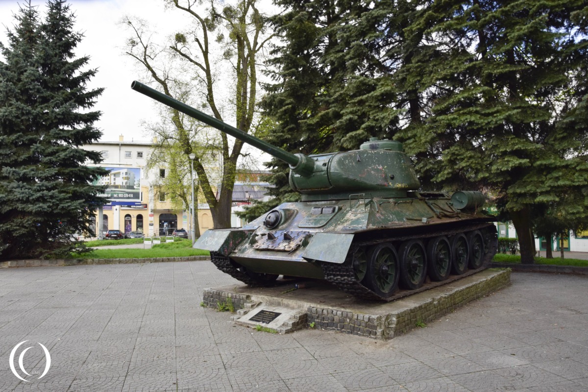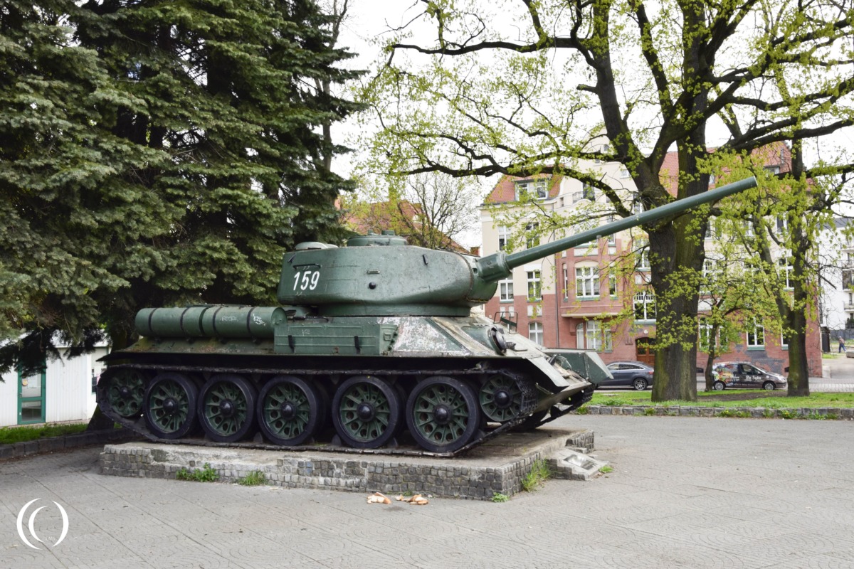In Elbląg, Poland, there is a public monument featuring a Soviet T-34/85 tank, a landmark tied to military history and the city’s post-war heritage.