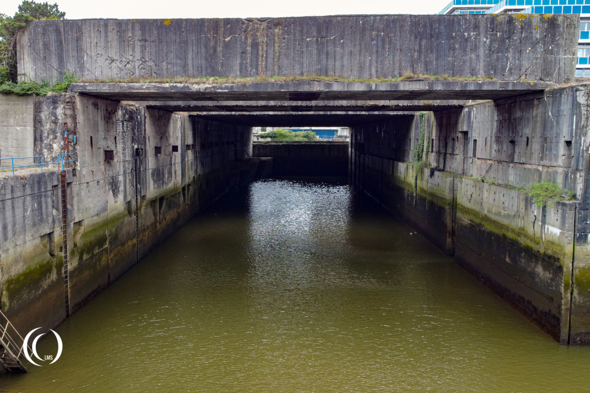 Although at first the plan was focussed on the construction of a new bunker in port F of the Weser shipyard grounds, in mid-1944 this shifted towards the reutilisation of an uncompleted dry-dock constructed earlier between 1940 and 1942. Finally it was decided that the dock, which had been almost completed, would be provided with a protective cover and converted into a bunker facility. The project “Weser I” was renamed to “Hornisse”.