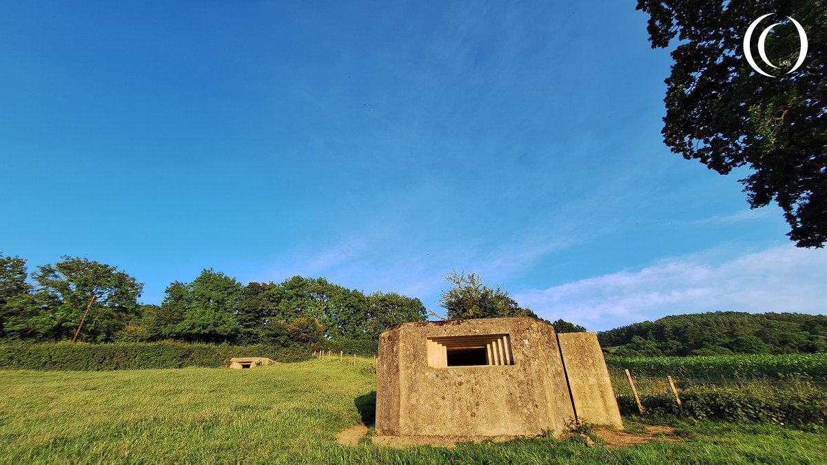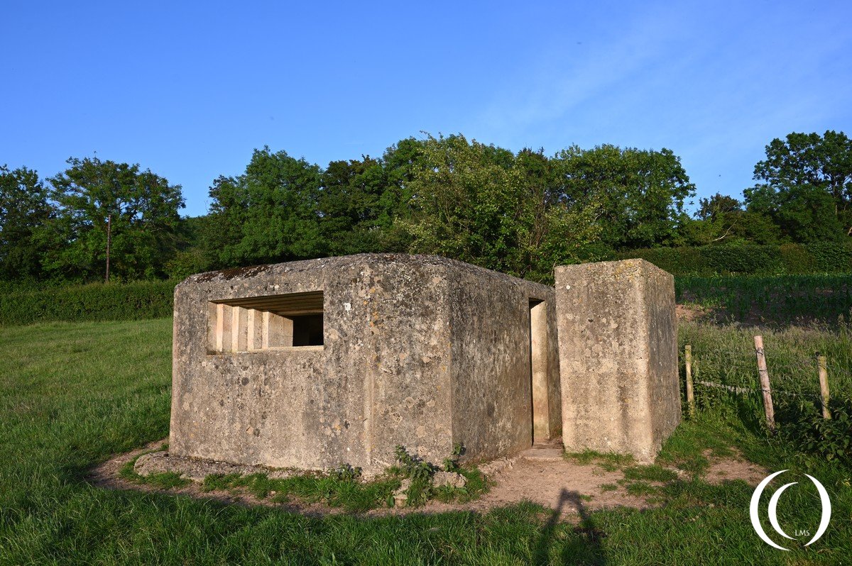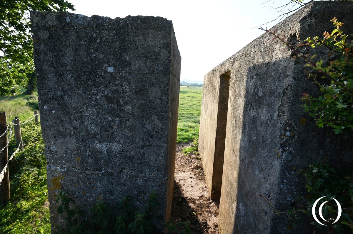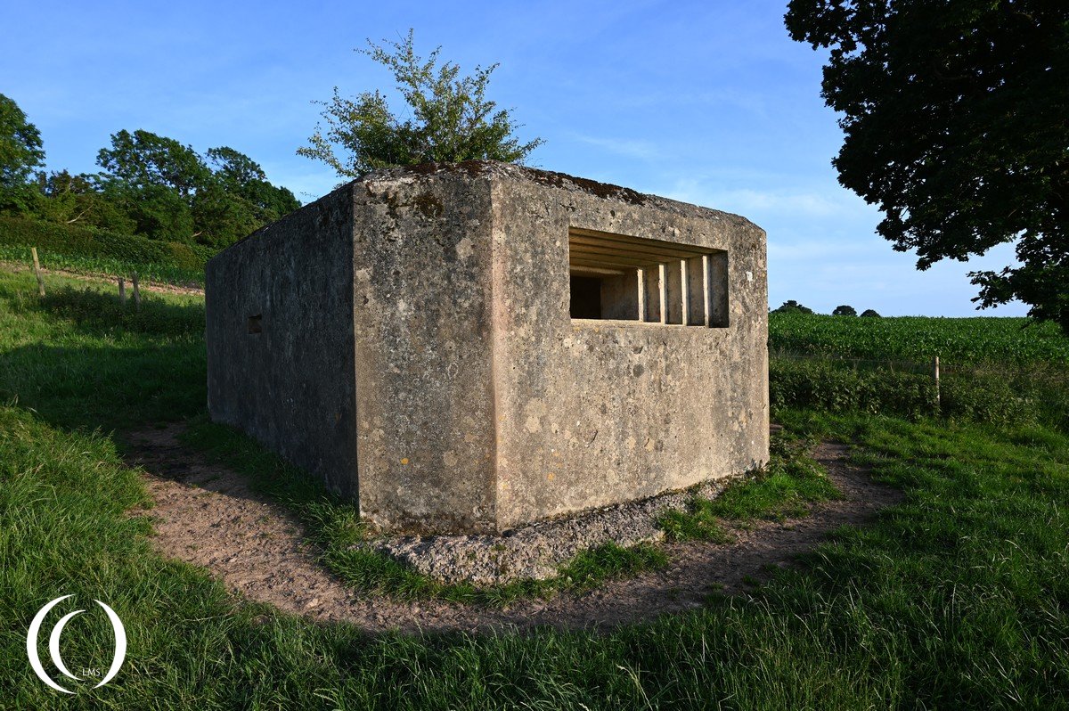 In the photo above, you see a Type 24 pillbox between the two trees on the left in the farmer’s field. Not in the photo, on the right, is another Vickers Machine Gun Emplacement.