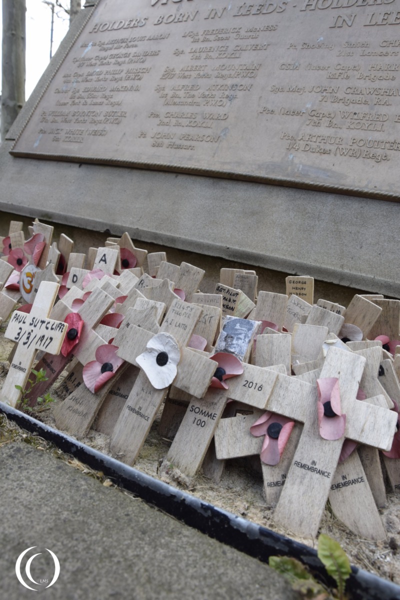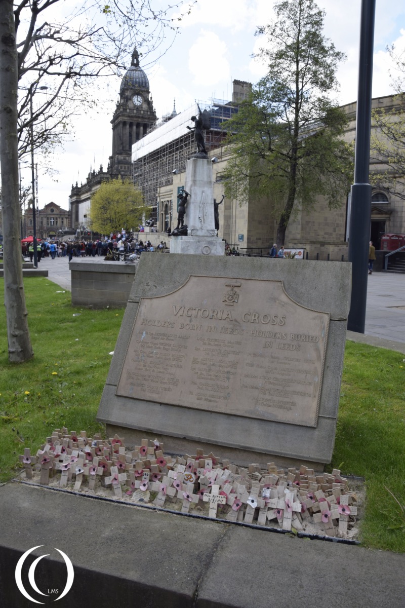 Near the Leeds War Memorial you will find a commemorative panel for the Victoria Cross Holders from Leeds or the surrounding area.