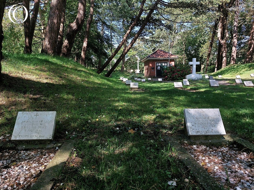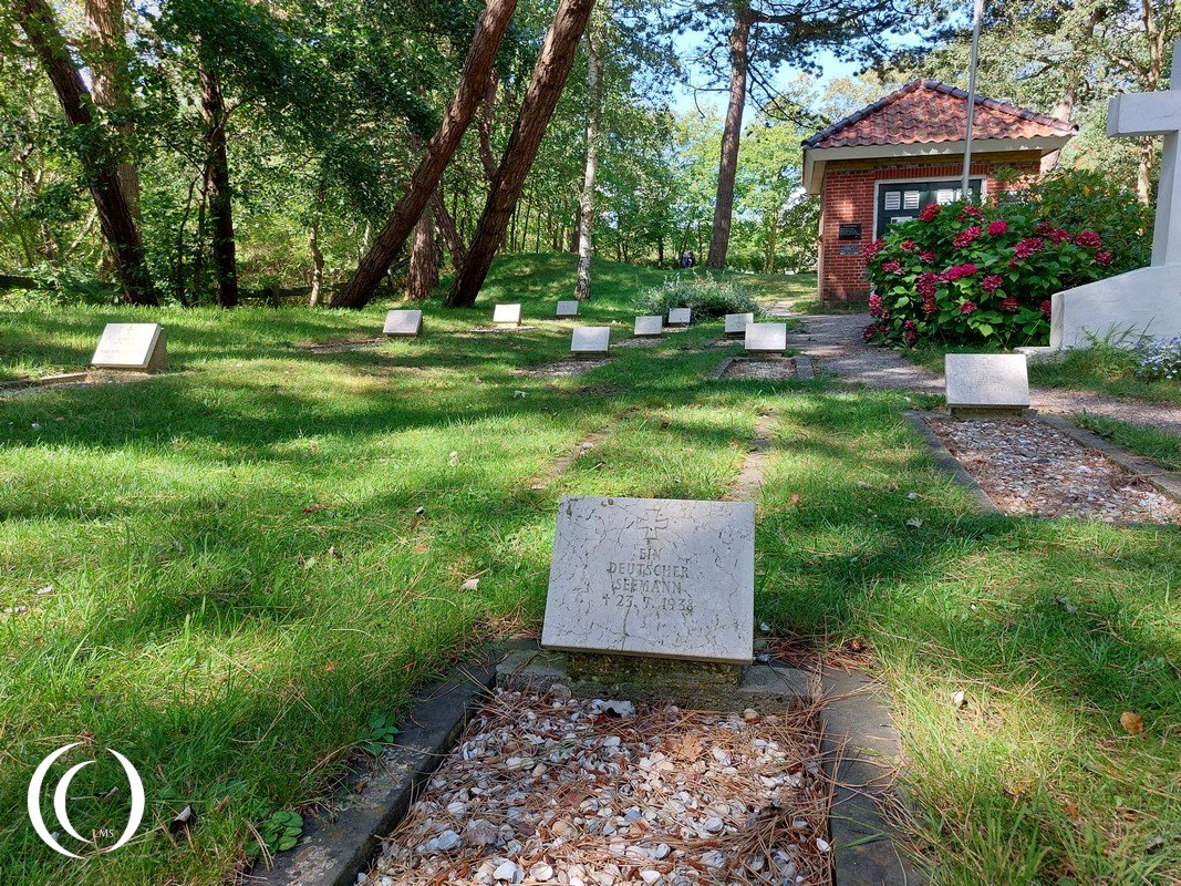 The Vredenhof Military Cemetery (begraafplaats Vredenhof) on Schiermonnikoog is a peaceful and poignant cemetery nestled in the dunes. The cemetery’s origin dates back to 1906, established to bury individuals who had washed ashore, mostly by local initiative. Schiermonnikoog is a Dutch island on the northerns side of the Netherlands in an area called the Wadden sea (on the south east side of the North sea). The Wadden Sea stretches from the Dutch city Den Helder, in the northwest of the Netherlands, past the great river estuaries (Wezel and Elbe) of Germany to its northern boundary at the ciity of Skallingen in Denmark.